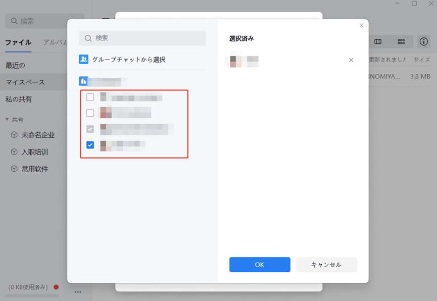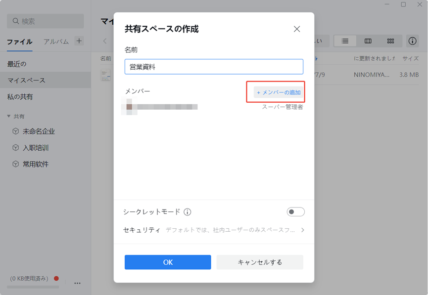 ファイル名を決めて、共有したいメンバーを選んで「OK」。