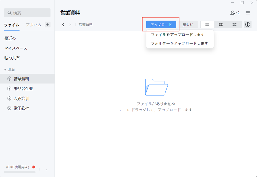 社内のメンバーと資料や画像を共有できて、100GBまでは無料で使えます。