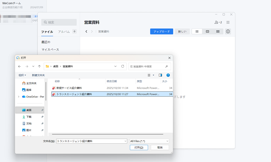 微盘(WeDrive)は、企業版WeChat(WeCom)に標準で入っている共有フォルダ機能です。