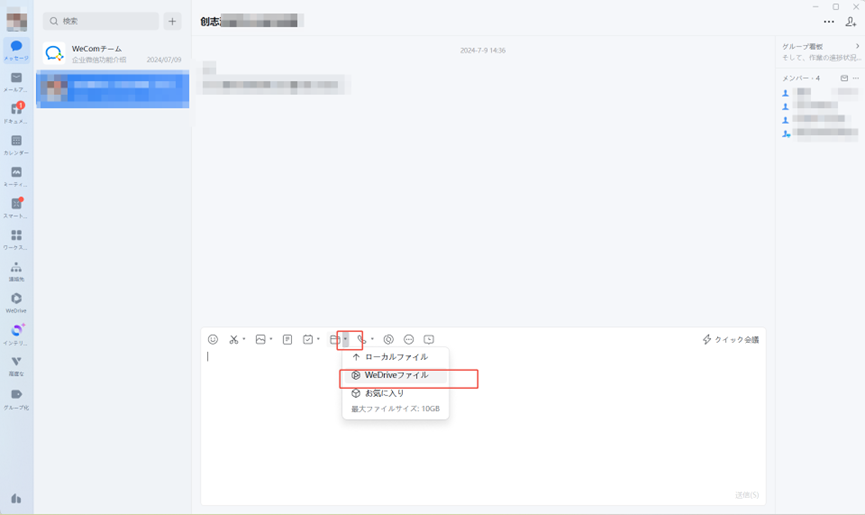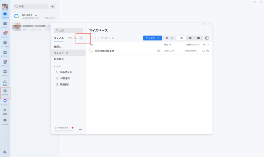 企業版WeChat(WeCom)の左側にある「WeDrive」マークをクリックすると、微盘(WeDrive)が開きます。