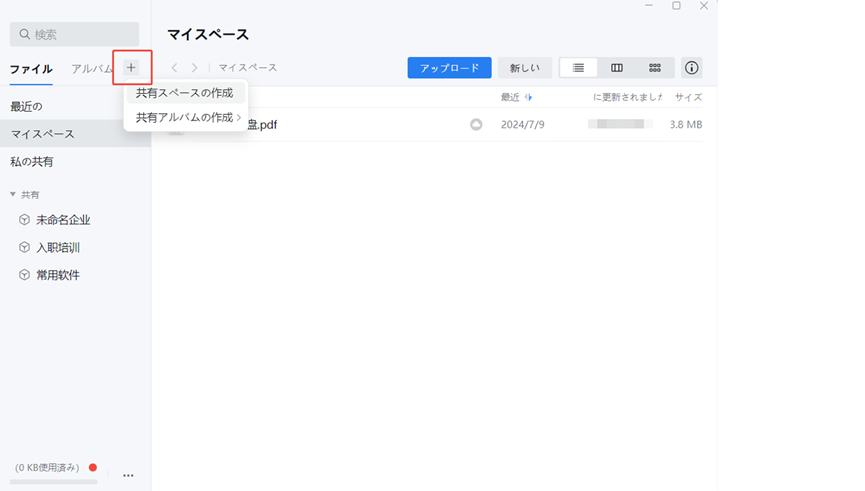 左上の「+」を押すと、「共有スペースの作成」や「共有アルバムの作成」が出てくるので、